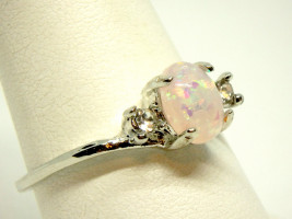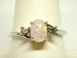 For your Consideration: ~A Lovely Necklace~ Perfect Christmas Gift ~ Chain: Silver Stamped 925 ~ Main Stone: A Brilliant Lab- White Fire Opal Oval Cut ~ Additional Stones: 2 White Topaz Round Cut ~ Design: Promise ~ Size: 9 ~ Birthstone October ~ Lovely Ring Perfect For Any Occasion ~ *This Item Is New Never Worn* Note: All items must be picked up by appointment* ~ Ring Box Included
