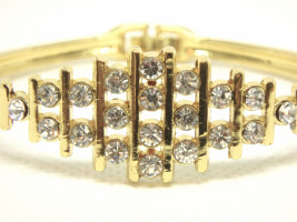 For your Consideration: ~A Lovely Cuff Bracelet ~ Perfect Christmas Gift ~ Cuff: Yellow Gold Filled ~ Main Stones: 20 Diamond White Crystals Round Cut ~ Lovely Bracelet Perfect For Any Occasion ~ *This Item Is New Never Worn* Note: All items must be picked up by appointment