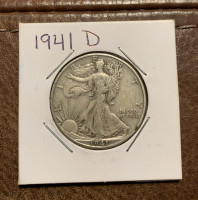 1941 D Walking Liberty Silver Half Dollar Antiques Coins & Currency