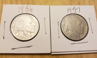 1936 & 1937 Buffalo Nickel Indian Head Coins & Currency