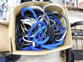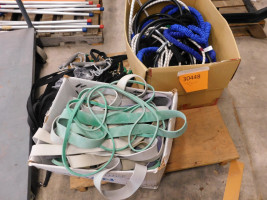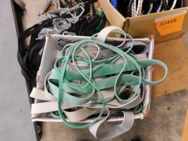 One pallet of workout, one box of stretch bands, one box of workout rope and miscellaneous workout straps and metal handles, show signs of heavy use.