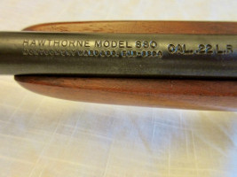 Montgomery Ward, Hawthorne Model 880, CAL.22 L.R., Semi-Auto Rifle With Tube Magazine.Made by COLT for Wards, same model as the COLT COLTEER. 39 3/4” long, 22” barrel, grooved for scope, adj. rear sight. Excellent bore, all original, NO SERIAL NUMBER. Made between 1957-1966. Tested to be in good working condition.