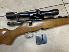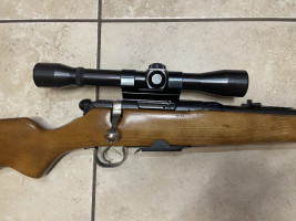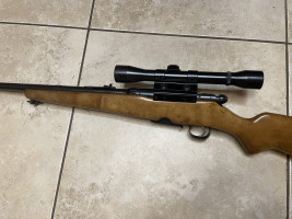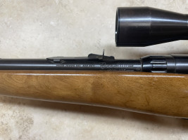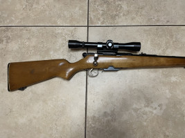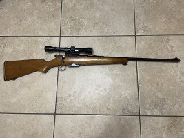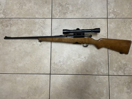 .222 Remington Rifle (Revelation Model 225 by Savage) 24" barrel, 4 Round magazine, with Weaver Marksman 4x scope Serial #148644