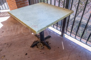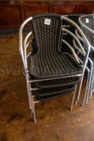 35x35” table, 4 aluminum frame plastic wicker chairs. . All items must be picked up by 10/5/2021, as the new tenant takes possesion of the building that day.