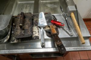 Wire rack, aluminum ice scoops, stirrer, griddle press, spatulas, tons, meat hammer, . All items must be picked up by 10/5/2021, as the new tenant takes possesion of the building that day.