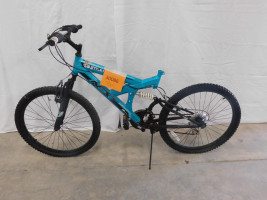 24” inch Next Gautlet mountain bike, 18 speed, Shimano components, front and rear suspension, missing seat post and saddle, rust on the chain, non working condition, subject to repair.