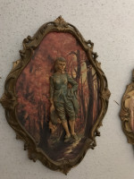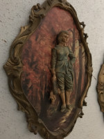 Vintage Blue Boy and Pinkie Raised relief plaques. Approx 16 inches tall.