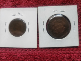 Lot B: No date 2-cent piece and no date Morton large cent