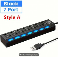 7 Ports LED USB Adapter Hub Power On/ Off Switch For PC Laptop Computer