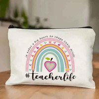 Qty of 2 Chic Mini Y2K Rainbow Letter Teacher-Themed Makeup Bag - Portable & Lightweight Canvas Cosmetic Pouch For Travel, Beach, Pool Parties & More Bin 11