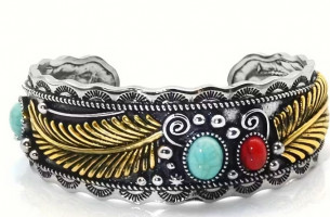 Open Bangle | Adjustable Vintage Dark Style High-End with Turquoise Inlay