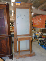 #30703 — Antique Hall Tree with mirror and coat hooks