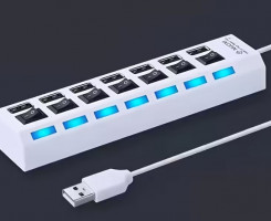 7-Port USB 2.0 Hub with Individual On/Off Switches & Blue LED Lights - USB- (No External Adapter) Plug & Play Splitter for PC, Laptop, Desktop - USB-A Ports Hub for Flash Drives, HDD